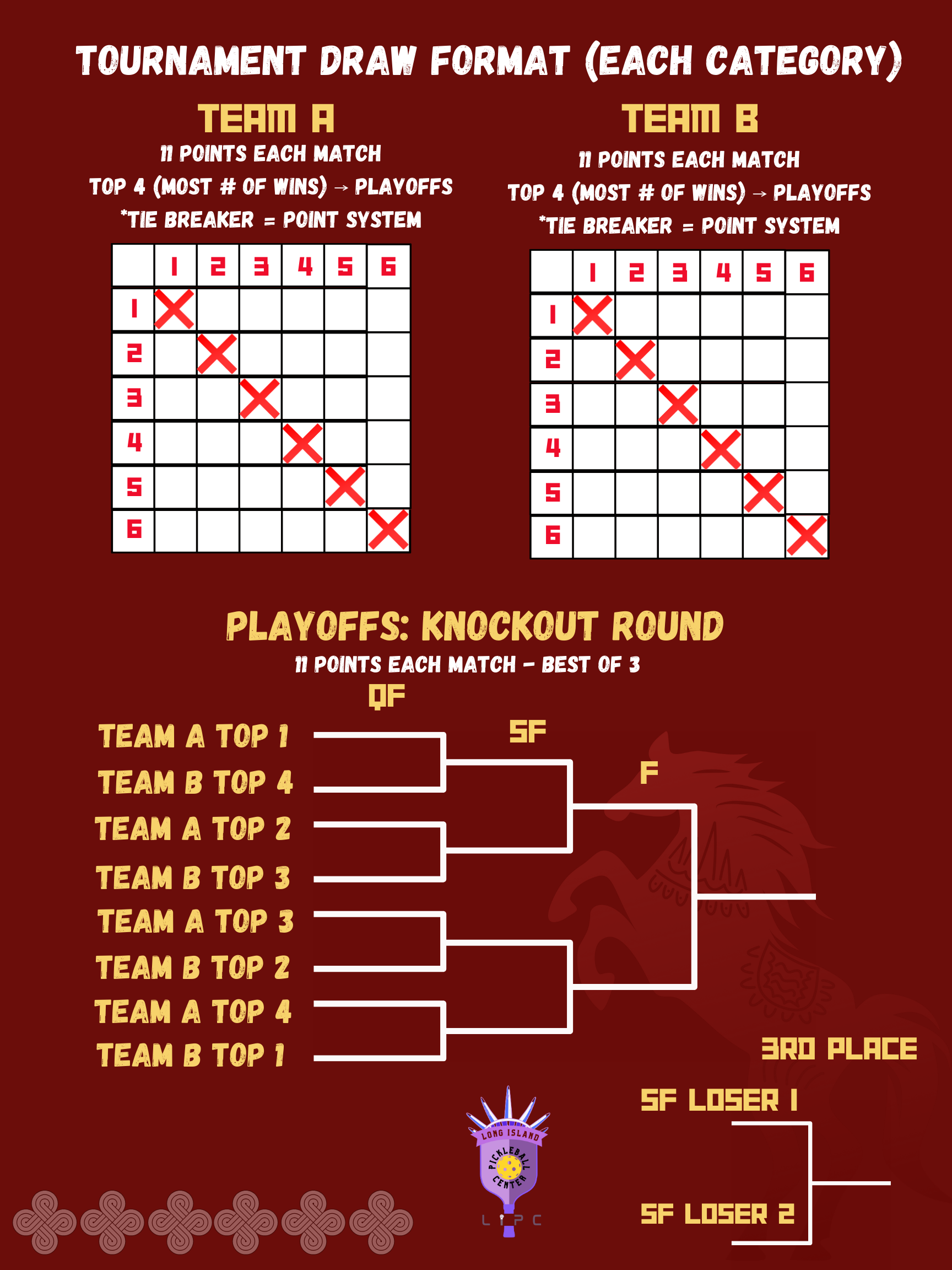 TOP 8 WILL ADVANCE TO PLAYOFFS : SINGLE ELIMINATION